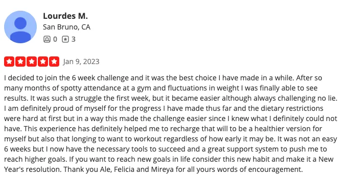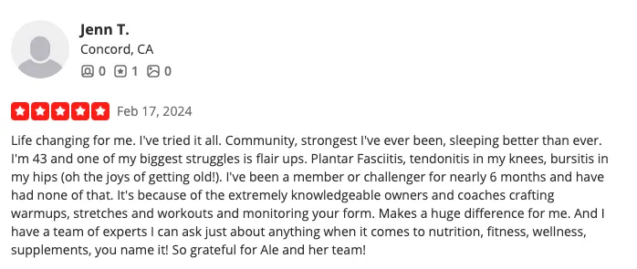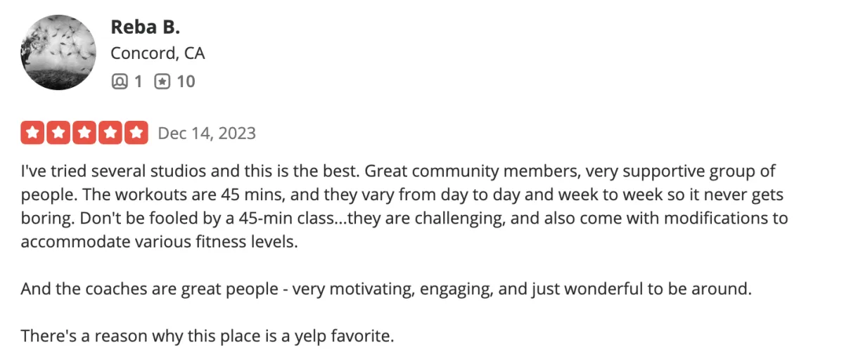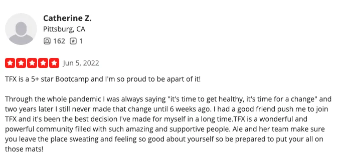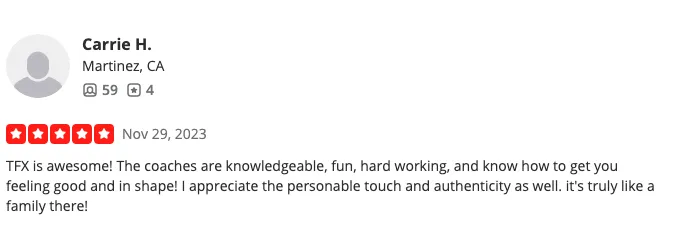 "The coaches are friendly, challenging, and fun. Everyone shows up to work hard. The atmosphere is inclusive and welcoming. I genuinely look forward to class every single day."